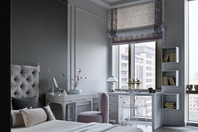 «Квартира имеет большую глубину, и ряд помещений из-за такой оконной сетки остаются совсем без естественного освещения, - отмечает дизайнер. – Поэтому нашей главной задачей было максимально раскрыть пространство, дать больше воздуха, избавиться от «слепых» зон. Отсюда и анфиладная планировка, и светлая палитра, и разнообразные декоративные приемы-обманки, которые позволяют играть с объемом». Заказчики любят современный французский стиль, они хотели минималистичный, но элегантный интерьер в духе изысканных парижских салонов.