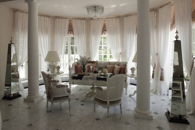 Неповторимость представленного помещения достигается посредством использования характерных деталей в оформлении. Например, любая зона отдыха может дополняться колоннами, которые могут условно разделять пространство на функциональные части, одной из которых и является представленный интерьер. Необходимо учитывать, что ампир дизайн зоны отдыха нередко предполагает использование не отдельной комнаты, а части гостиной, например, где устанавливается вся необходимая мебель для комфортного времяпрепровождения. Именно для того, чтобы показать границы такого пространства принято использовать в интерьере колонны, которые не являются слишком громоздкими и позволяют подчеркнуть стилистику помещения.