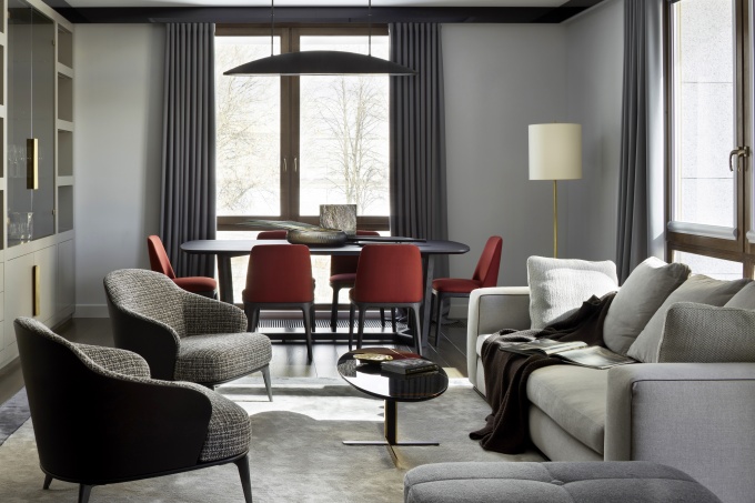 Архитектор Максим Новиньков спроектировал технологичный и эстетичный интерьер в малоэтажном жилом комплексе «Снегири Эко» рядом с парком и озером.