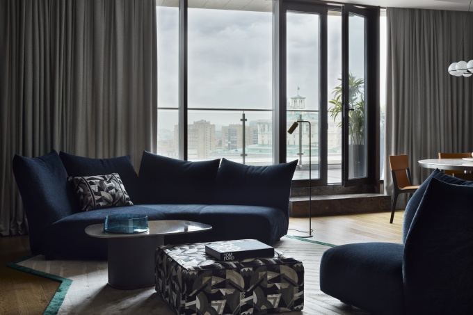 Команда студии Hills оформила квартиру на Шаболовке и вступила в диалог с главной архитектурной доминантой района – Шуховской башней.
