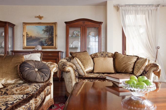 Самым главным условием для восточного интерьера является его удобство. Здесь дизайнеры подбирают роскошную мягкую мебель, которая будет очень эффектно смотреться за счет своей атласной или шелковой обивке. Большое количество подушек самых разных размеров и форм, выполненные из парчи и бархата создадут неповторимую атмосферу комфорта, уюта, благости.