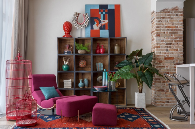 В итоге получился смелый эклектичный проект, в котором соединены элементы современного европейского интерьера, азиатские мотивы и винтажная мебель.