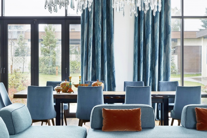 Первоначально команда бюро Art Group под руководством Дарьи Васильковой хотела предложить заказчикам – большой семье с детьми и внуками – более спокойный и традиционный загородный интерьер. Однако заказчики попросили добавить яркости, цвета, дерзости…