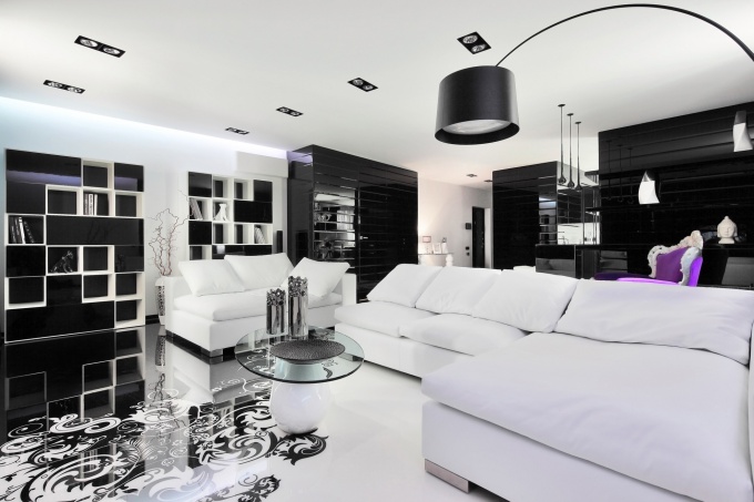 Для молодой пары, которая любит удивлять окружающих, архитекторы Майкл и Элен Мирошкины спроектировали неординарный интерьер в контрастной цветовой гамме. Несмотря на черно-белую колористику минималистичное пространство вовсе не кажется холодным и строгим, напротив, оно выглядит уютным и дружелюбным.