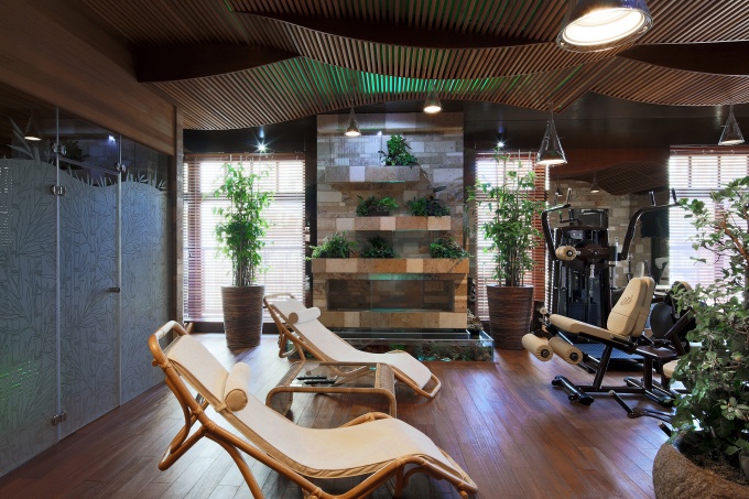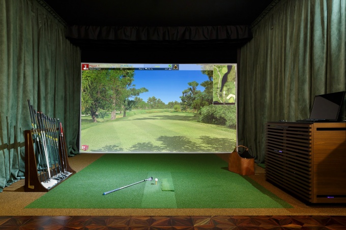 «Поэтому интерьер начался с гольф-симулятора, ему подчинена планировка и выбор отделочных материалов», - рассказывает автор проекта. Гольф – статутный вид спорта, чтобы поддержать идею роскошного отдыха, дизайнер создала элегантный интерьер в стиле американского ар-деко: с панелями и мебелью из палисандра, кожаными буазери, зеркалами и латунными отделками.