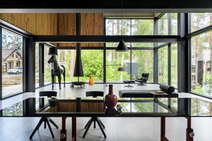 Архитекторы бюро Menitsky project оформили дом на природе, создав светлый и воздушный современный интерьер, который воспринимается как продолжение живописного ландшафта.