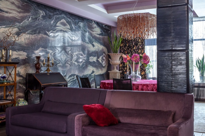 Основным пожеланием заказчицы было уйти от традиционной современной классики к более смелому смешению стилей, насыщенной цветовой гамме и изящной декоративности. Дизайнеры с удовольствием поддержали столь смелое предложение, тем более, что жесткая геометрия и рубленые формы квартиры нуждались в смягчении и визуальной корректировке.