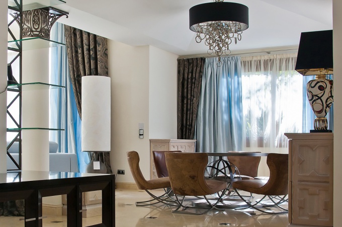 В дизайн-проекте современных апартаментов присутствуют черты колониального интерьера. Поскольку хозяева много путешествуют, то в интерьере своего жилья они хотели отразить богатство художественных и ремесленных традиций культур разных стран и народов. Поэтому здесь можно увидеть восточные ковры, французскую мебель, статуэтки из Китая, богемский хрусталь, чучело африканского крокодила.
