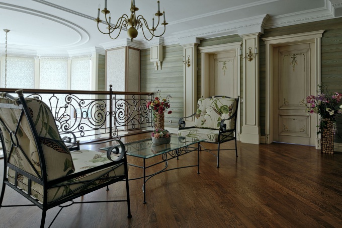 Перед архитекторами бюро «Студия B & L» стояла задача реконструировать построенный около 10 лет назад по типовому проекту дом из клееного бруса, превратить деревенское жилье в загородную усадьбу. В качестве основного декоративного мотива была выбрана легкая неоклассика с нотами прованса с пастельной цветовой гаммой, ажурной ковкой и цветочной орнаментикой.