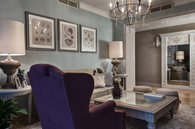 Большая квартира в жемчужно-бирюзовых тонах с лиловыми акцентами находится в новой монолитной высотке в центре Москвы. Ее владельцы – молодая семья с тремя детьми – свое новое жилье видели светлым, запоминающимся и уютным. Наличие детей диктовало основной сценарий формирования пространства с разделением на зоны личного комфорта для каждого члена семьи и общей дневной зоной. В качестве основной декоративной линии была выбрана современная классика.