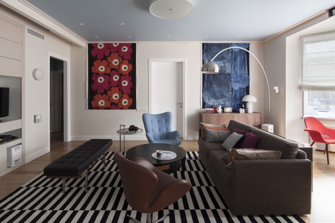 Для молодой семьи с двумя детьми дизайнер Ирина Крашенинникова оформила 105-метроовую квартиру на Таганке в новом монолитно-кирпичном доме. Это динамичная и спортивная семья, хозяин дома – хоккеист, мамам и дочери – «болеют» за папу, все они любят путешествовать и принимать гостей. Поэтому интерьер выглядит ярким и эмоциональным.