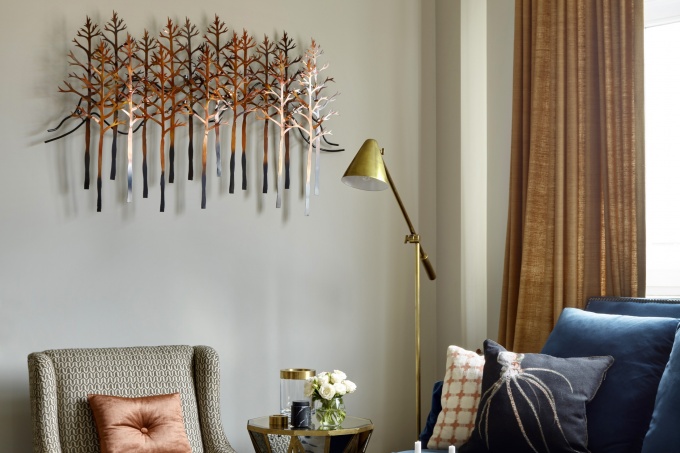 «Чрезвычайно важно было выделить под занятия творчеством максимально большую площадь, наполнить ее светом и создать атмосферу, которая будет вдохновлять», - рассказывает Татьяна Аленина. К тому же, квартира имеет идеальное для своей функции расположение: из панорамных окон видны ажурные ветви деревьев, отчего кажется, что это вовсе не городское жилье, а загородный дом, где ландшафт является неотъемлемой частью интерьера. Тема природы, листьев, земли, коры деревьев, мха стала ключом к декоративному решению пространства, определила цветовое решение и выбор отделочных материалов.