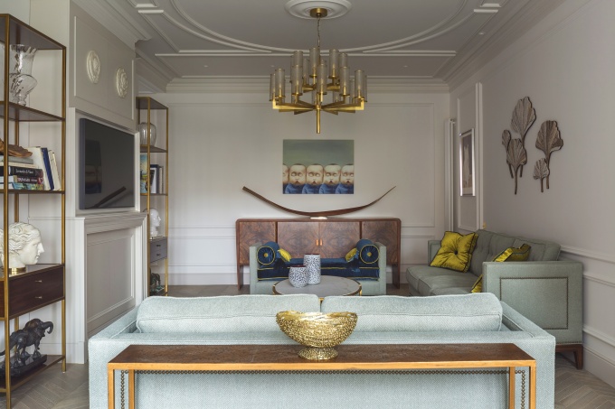 «В квартире площадью 100 кв. м мы стремились соединить парадность и современные представления о комфорте, поэтому убрали чрезмерную пышность и оставили лишь дух, образ Серебряного века: мятную цветовую гамму, плавные текучие линии, цветочную орнаментику… Сделали современный по своей сути интерьер с точно дозированными декоративными элементами в стиле модерн и ар-нуво», - отмечает автор проекта.