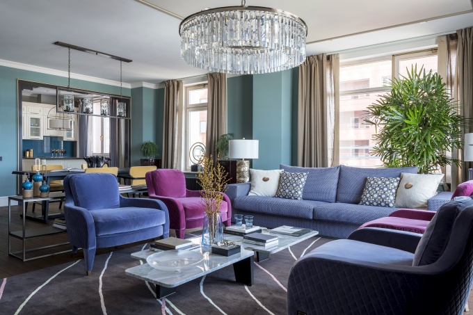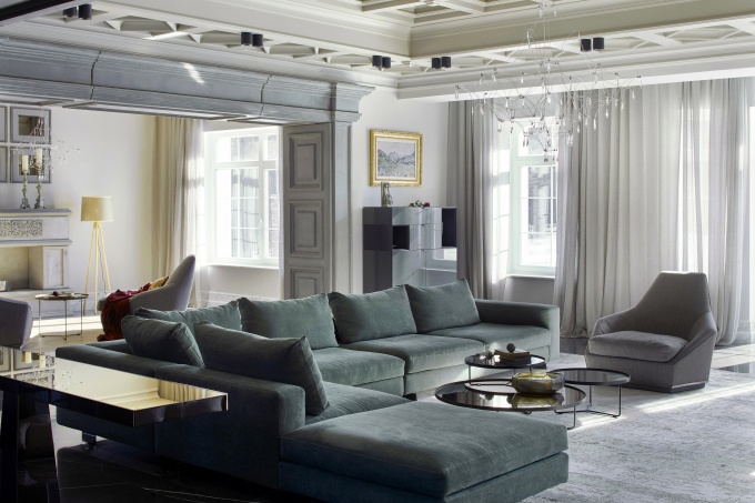 «Наш клиент – большой ценитель классики, он поставил задачу спроектировать статусный интерьер, в котором удобно жить одному и принимать гостей, собираться большими компаниями. На чистой классике не настаивал, но именно она стала основой интерьера: классические пропорции, осевое построение, принципы симметрии, характерные детали стали фоном для современного дизайна, - рассказывают авторы проекта. – Образ интерьера сложился сразу, как только мы зашли на объект: роскошные панорамные окна, захватывающие городские перспективы и сталинская высотка, которая отлично просматривалась прямо от входа, легли в основу декоративного решения пространства. Нам следовала найти такие средства и решения, чтобы они стали достойным обрамлением прекрасного вида за окном».