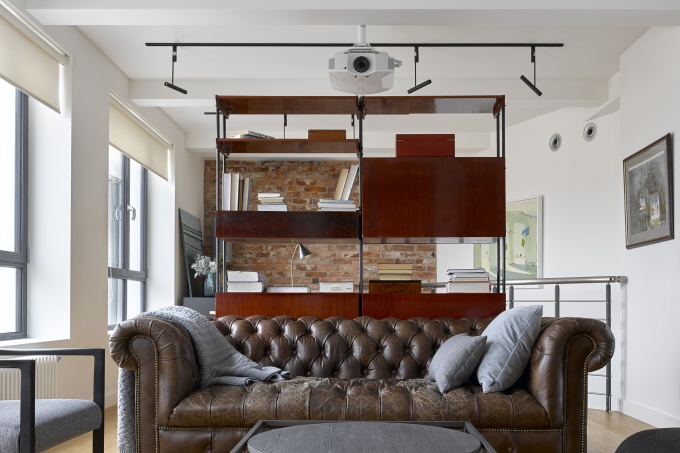 «Когда я стала публиковать рабочие фото квартиры в социальных сетях, мне написали люди, которые ранее хотели купить это жилье, но испугались его сложной архитектуры, - рассказывает автор проекта. – Но мои заказчики оказались смелее и дали полный карт-бланш в освоении пространства». Что касается стилистики, то первоначально владельцы планировали обставить квартиру современной итальянской мебелью, но архитектор убедила их добавить винтажных предметов, придать интерьеру вид квартиры с историей. К тому же ряд декоративных элементов – металлическая лестница, колонна с декоративным барельефом и даже деревянный камин с латунными вставками – остались от предыдущих хозяев. В новом контексте они обрели совершенно иной вид, стали неотъемлемой частью стильной современной квартиры, которая могла бы появиться в модных районах главных мегаполисов мира. Из-за того, что помещения расположены с небольшим сдвигом относительно друг друга, пришлось полностью менять все коммуникации, а также заново проектировать санузлы.