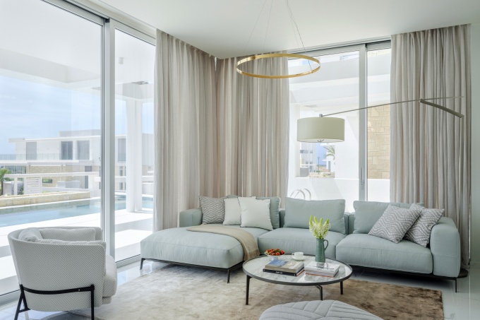 «На объекте я была всего три раза: первый раз на стадии бетонной пустой коробки, второй раз – после завершения чистового ремонта, перед расстановкой мебели и третий раз – при финальном декорировании и фотосъемке, – рассказывает автор проекта. Строительными работами занималась местная компания, поэтому основной сложностью стала дистанционная коммуникация, непросто было приспособиться и к ритму жизни киприотов. На острове никто никуда не спешит, не расстраивается по пустякам и не слишком педантично относится к качеству работ и их соответствию чертежам и техническому заданию. Поэтому контролировать процесс приходилось особенно тщательно по фотографиям в мессенджерах в режиме on line».