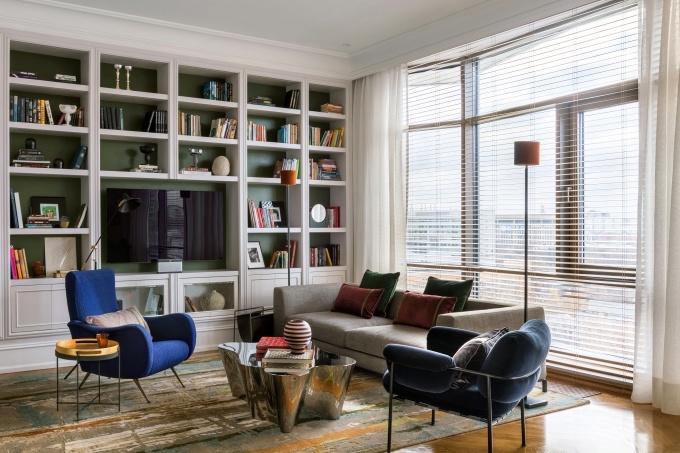 Для интеллигентной семьи с обширным кругом интересов дизайнеры Ольга Евдокимова и Олеся Зайцева оформили трехкомнатную квартиру в новом высотном доме с современной архитектурой, создав комфортную среду для жизни в мегаполисе. Заказчики обратились в студию «Гостиная», когда работа с другими дизайнерами зашла в тупик и нужно было срочно спасать ситуацию.
