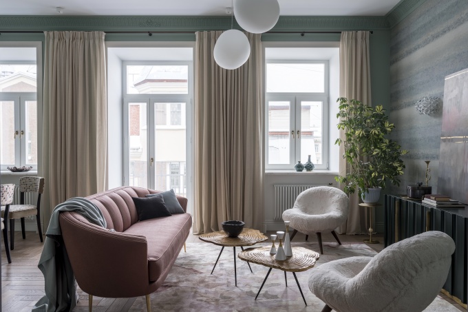 Заказчики хотели теплый, гостеприимный и непринужденный интерьер, где приятно находиться с близкими и принимать гостей. Дизайнер предложила легкий интерьер в пастельной гамме с элементами mid-century и романтичным декором. В итоге получился эффектный проект, в котором сохранился дух старой Москвы.