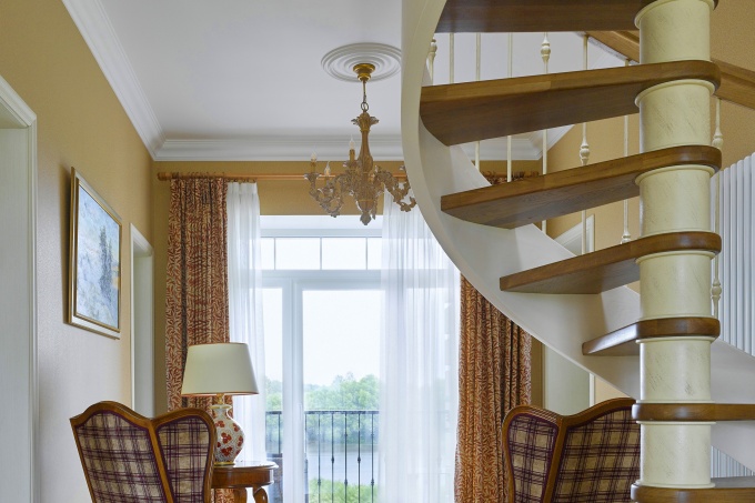 Парадный вестибюль в английском стиле викторианской эпохи – это строгое, но торжественное помещение. В цветовом решении широко используется контрастность. Ступени и перила выполняются в темных тонах, а балясины и подступенники в молочно-белой и нежно-кремовой палитре. Материалом для такой лестницы служит дерево.