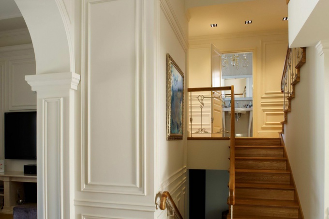 Им нравились французские интерьеры декоратора Анны Павловой, поэтому в качестве основной стилистики квартиры была выбрана современная классика в пастельной цветовой гамме с французскими мотивами. При реконструкции интерьера декоратору следовало сохранить не только деревянную винтовую лестницу, но и часть мебели. Двери, встроенные шкафы, кухонный гарнитур были сделаны на заказ по эскизам дизайнера.
