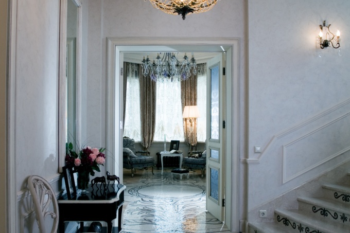 Поэтому они остановили свой выбор на комфортабельном доме в стиле хай-тек, окруженном живописной дубовой рощей, и обратились к архитектору Екатерине Григорьевой с просьбой о его тотальной реконструкции, перепланировке и оформлении интерьеров в старофранцузском стиле.