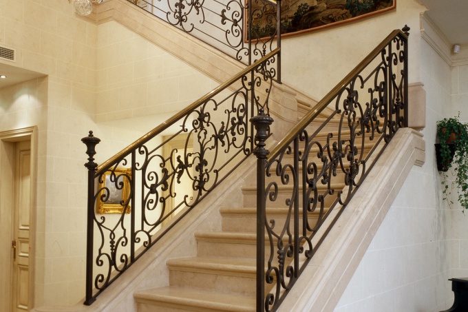 Отдельного внимания заслуживают декоративные элементы, которыми оформляется лестничный холл в прованс. Безусловно, главным украшением служит лестница с ее изысканными деревянными перилами и кованым ограждением, которое может состоять из орнаментов. Иногда торцы самих ступенек декорируются узорами с закрученными и закругленными элементами. Пол также может оформляться росписью в соответствующей манере. В качестве дополнительного украшения на стенах могут размещаться небольшие картины, а также зеркала в светлых рамах.