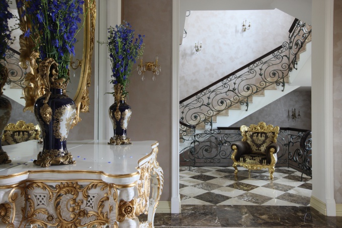 Дизайнер подключилась к проекту, когда дом уже был полностью готов, поставленная задача была непростая: следовало декорировать пространство на соответствующем уровне, заданном архитекторами-проектировщиками и достойно обрамить парадную дворцовую архитектуру.