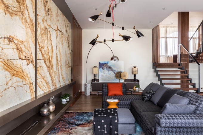Для семьи с тремя детьми дизайнер Ольга Черненко оформила дом в Подмосковье площадью 650 кв. м. Благодаря использованию сбалансированной теплой палитры с умеренными цветовыми акцентами, а также материалов из экзотических пород дерева с живописной, насыщенной фактурой, она создала комфортное пространство для семейной жизни на природе. Задача перед дизайнером стояла непростая: требовалось реконструировать существующий коттедж с многоуровневой структурой, максимально увеличить жилую площадь и создать интерьер, который будет актуален долгое время.