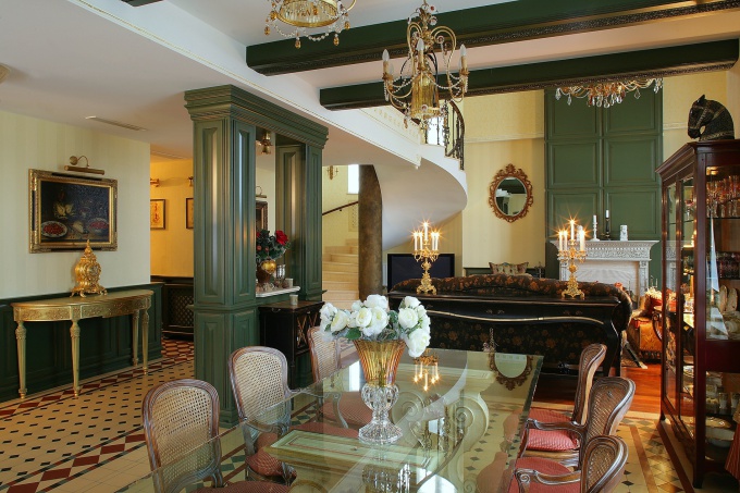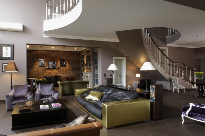 Выдержанное в европейской архитектурной традиции строение во многом определило и характер интерьера – классический загородный особняк в духе старой Европы, но без какой-либо привязки к национальным корням.