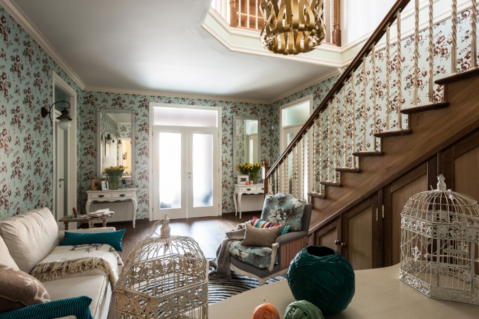 Небольшой двухэтажный деревянный дом задумывался как место для отдыха и тихих семейных уик-эндов. Основное время заказчики проводят в городе, поэтому интерьер дома они изначально видели спокойным, теплым, уютным. Стилистика прованса и легкого кантри здесь оказалась как нельзя более уместной.