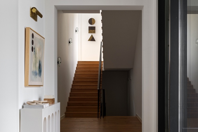 Во-первых, потому что перед ними стояла задача соединить пожелания заказчиков о неоклассическом интерьере с минималистской архитектурой пространства, которая диктовала совсем иную стилистику. А во-вторых, решить несколько сложных конструктивных задач, вызванных расположением лестничного проема по центру главного объема и низкими потолками мансарды второго этажа. В сумме они не украшали небольшую по габаритам квартиру.