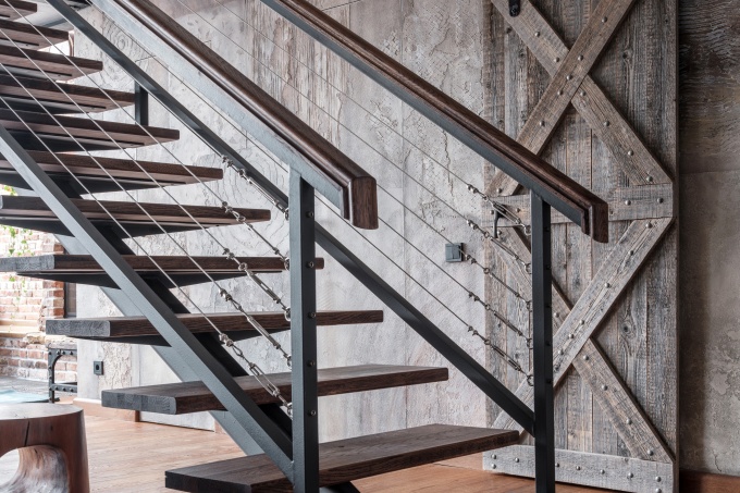 Его элементы – открытые пространства, кирпич, техническое освещение – легли в основу дизайна». «Утепляют» и усложняют образ интерьера приметы скандинавского стиля (обилие дерева!) и предметы в стиле богемный шик. Хотя винтажных или антикварных вещей в интерьере всего две (кресла в гостевой), остальные изделия современные, они сделаны на заказ или найдены в ассортименте мировых производителей.