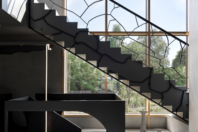 Бюро Le Atelier реализовало экспериментальный проект, дом как тотальное произведение искусства. Его радикальные интерьеры – ответ на нетривиальный запрос заказчицы, которая увидела в предыдущих проектах архитекторов проектах арт-направленность и поставила задачу создать piece of art, современное пространство тишины. Ради этого она и приобрела готовый трехэтажный дом площадью 420 кв. м на Рублево-Успенском шоссе.