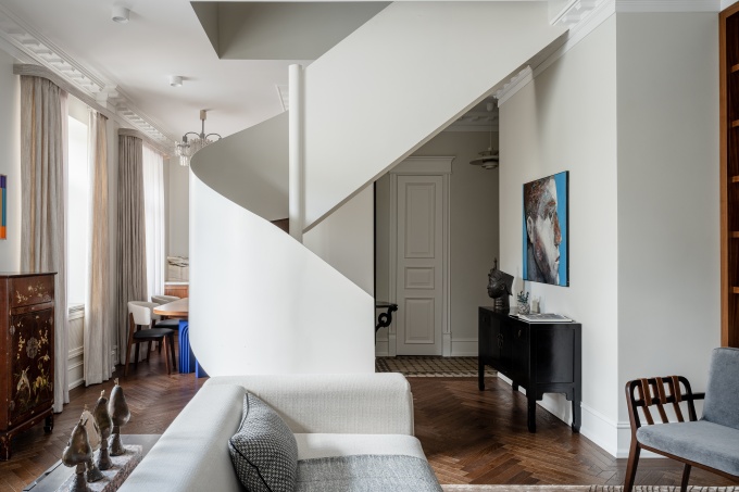 Эта двухэтажная квартира в дореволюционном доме на Арбате стала для архитекторов студии Arcus Design настоящим вызовом.