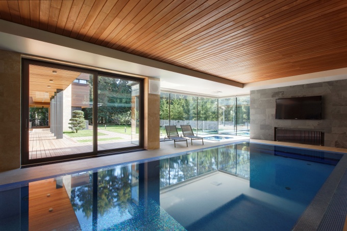 Для семейной пары с двумя детьми – приверженцев здорового образа жизни и активного отдыха – архитекторы бюро Романа Леонидова спроектировали загородный дом площадью 1500 кв. м: просторный, основательный и максимально открытый на природу. Архитектура здания в стиле конструктивизм позволила создать большие открытые пространства, а панорамные витражи – вписать здание в окружающий ландшафт, связать интерьер с экстерьером.