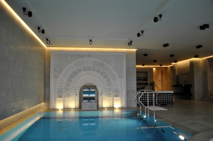 Работы начались с реконструкции фасада (его облицевали доломитом, украсили резными каменными вставками и изысканной ковкой) и коснулись интерьеров всех помещений в доме.