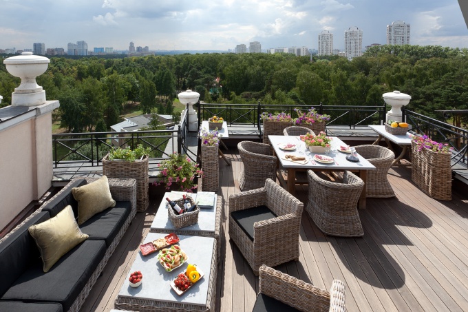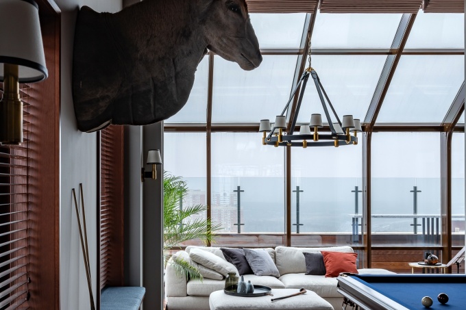 Отправной точкой выбора стилистического решения пентхауса стала мебель американских производителей: большая, добротная, близкая сердцу русского человека. Она идеально подходит для больших пространств с внушительной высотой.
