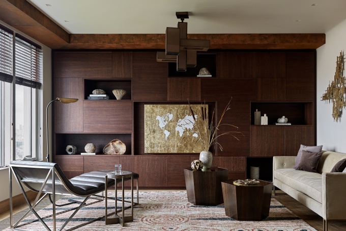 Панорамные окна с видом на город являются логическим продолжением пространства и дают ощущение воздуха и свободы. «Заказчики – большие ценители всего естественного и натурального. Они хотели дерева, камня, природных оттенков, - рассказывает автор проекта. – В итоге сложился мягкий интерьер в духе современной американской natural концепции, дружелюбной по отношению к человеку и окружающей его среде».