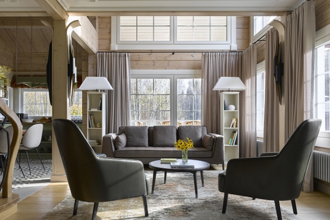 Полярная сосна кело – строительный материал с красивой и брутальной фактурой чаще всего связывают с небольшими банями или гостевыми домами с русским колоритом. Но архитекторы бюро «Студия Практика» смогли доказать, что этот экологичный, прочный и долговечный материал может стать основной для современного комфортного загородного интерьера для постоянного проживания.