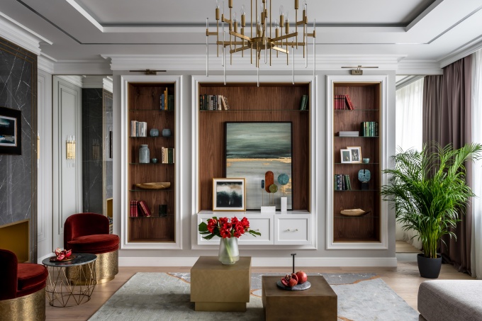 Заказчики проекта – русско-французская семья с детьми – хотели традиционный старомосковский интерьер для временных визитов в столицу: выдержанный и в меру строгий, но с изысканными деталями, характерными для классических европейских особняков. Взяв за основу типичное жилье московской интеллигенции, дизайнеры бюро создали интерьер-праздник, с подробным декором и легкой атмосферой.