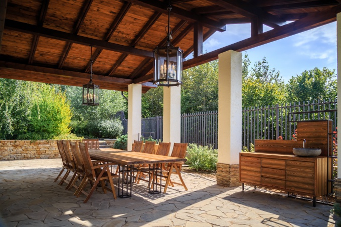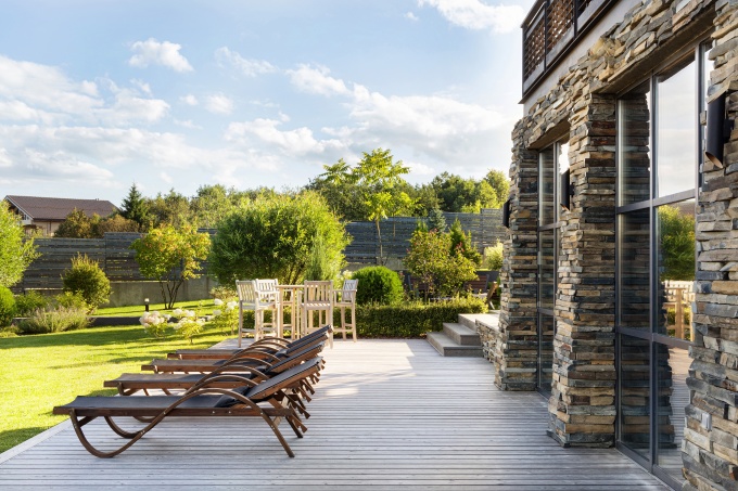 Цветочные композиции, украшающие террасу, создают настроение отдыха на природе.