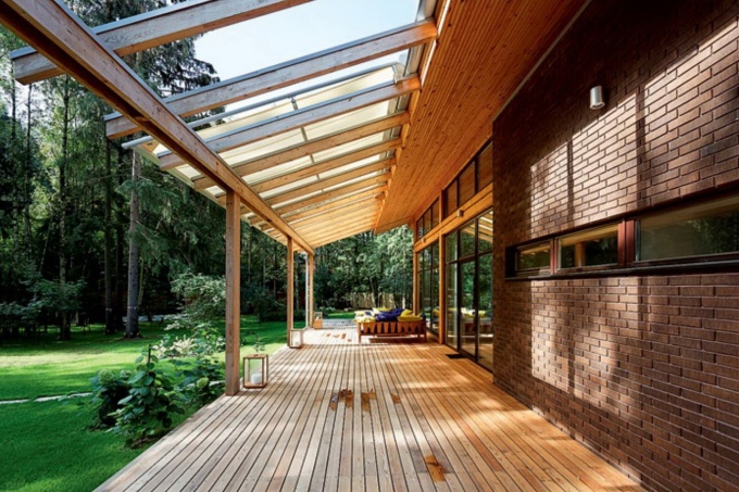 Идею загородного дома семейная пара вынашивала несколько лет, поэтому к архитекторам Екатерине Родняной и Александру Аллилуеву они обратились с четким видением его архитектурного облика, планировки и декоративного наполнения. Особенность жизни заказчиков заключается в том, что значительную часть времени они проводят на открытом воздухе: в саду, любуются пейзажем, готовят барбекю, принимают гостей, поэтому дом должен был быть тесно связан с ландшафтом.