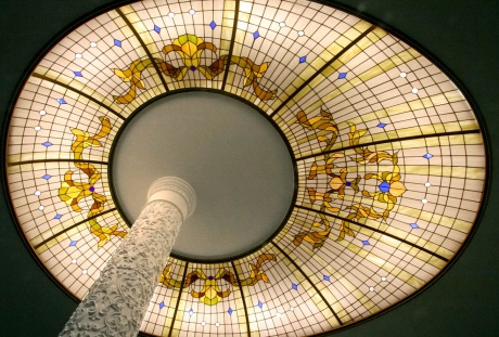 Как это часто бывает, решение вырастает из ситуации на объекте. Как в случае с этим очень сложным витражным куполом-плафоном. Квартира расположилась в мансарде реконструированного дома на Тверской. На месте будущего плафона красовались металлические конструкции, а сбоку торчала одинокая несущая колонна под потолок. Все это предстояло обыграть, – говорит Алина Щербакова