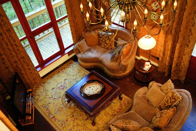 Этот небольшой деревянный дом расположен на живописном берегу Истринского водохранилища и решен стиле русской подмосковной усадьбы, богатой ощущением уюта, истории и традиций. Все стены, полы и потолки дома выполнены в дереве. Их оформлению, состариванию, многократному покрытию лаками было уделено особое внимание. В итоге все поверхности достигли достоверного, «возрастного» вида – полы потемнели, стены и потолки приобрели обжитой оттенок.
