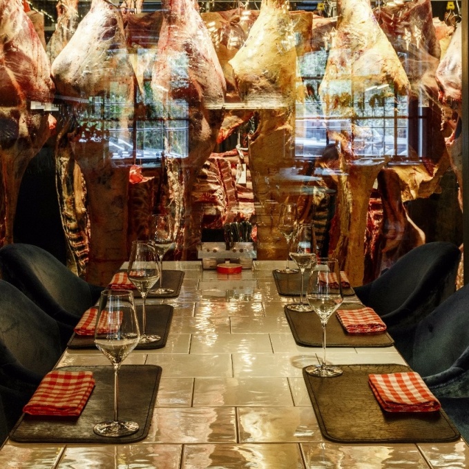BeefZavod - это уникальное объединение мясного цеха и мясной лавки с рестораном, площадью 300 м2. В ресторане каждая зона раскрывается по-разному и имеет свою индивидуальную атмосферу. Промышленную брутальность интерьера Evdokimov.Design смягчили большим количеством живых растений и современной итальянской мебелью с люксовой бархатной тканью DEDAR, а также люстрами из стекла и латуни, ручной работы. Практически все предметы ресторана Beefzavod были разработаны и сделаны специально для этого проекта. При входе в зал открывается вид: с одной стороны, на огромную камеру выдержки, в которой подвешены полутуши, а с другой стороны на камеру разделки мяса. В центре зала размещен открытый винный бар, а в конце зала расположен огромный гриль Grillworks. Обеденные столы деревянные и брутальные, некоторые сделаны из колод для разделки мяса. VIP зона для небольшой компании с регулируемым столом, диванами и асимметричной люстрой на латунных трубках. Колонны и стены вокруг окон обшиты панелями из нержавеющей стали.Посты официантов, высокие столы, стеллажи - тоже сделаны из нержавеющей стали, что ассоциируется с кухней и современным цехом. Очень стильно и необычно оформлена система освещения. Оригинальные светильники крепятся на настоящих монорельсах с крюками для транспортировки мяса, которые остались после первичной планировки здесь мясного цеха. В санузле прослеживается такой же контраст: кабинки устроены в настоящих холодильных и морозильных камерах, но с дорогой сантехникой, а умывальники из кухонных раковин.