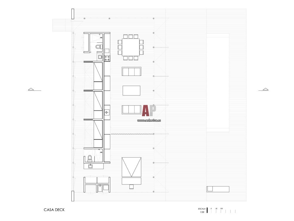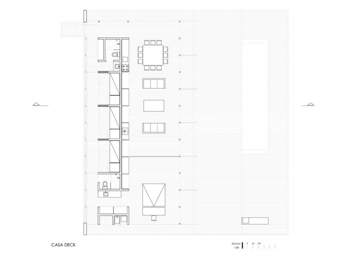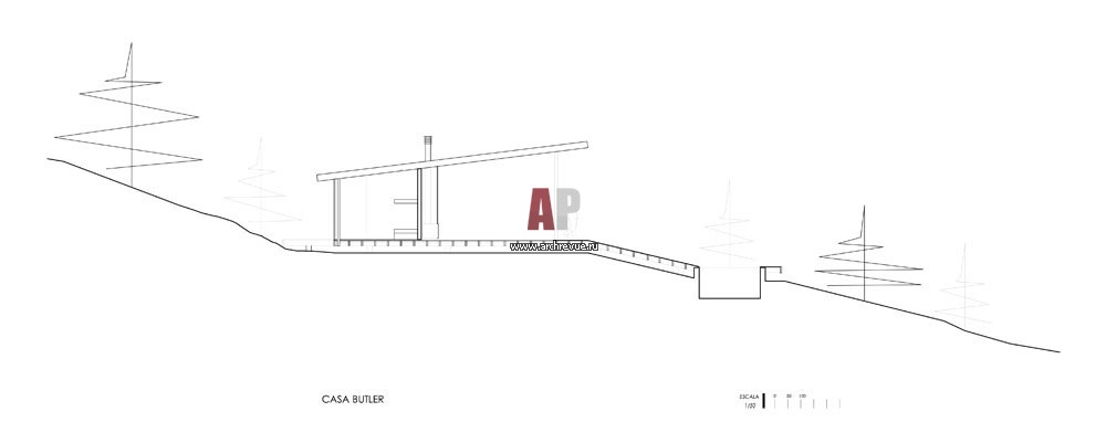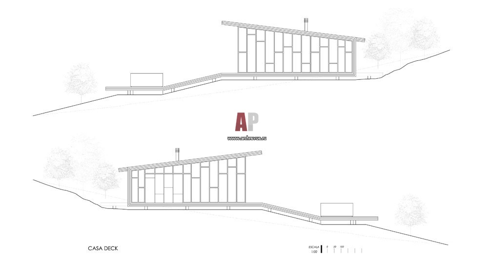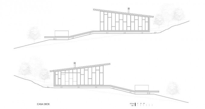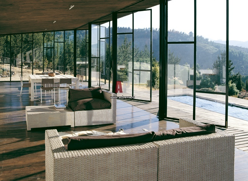 Дом находится в Чили недалеко от столицы, в местечке Рунге. Площадь дома 150 кв м., площадь террасы 370 кв.м.