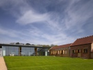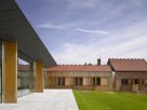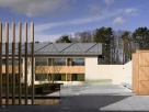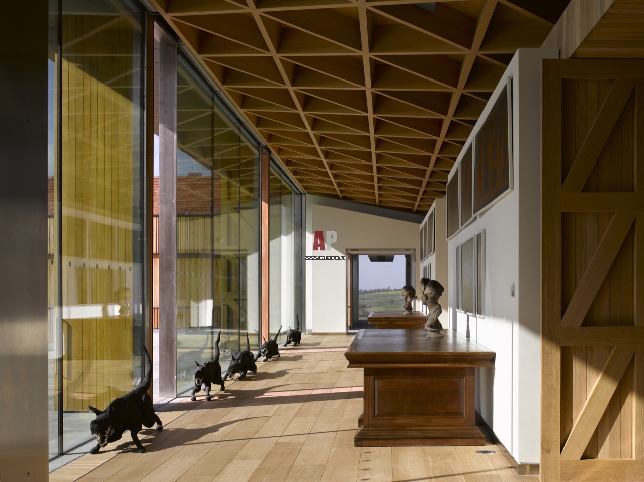 Природная простота является ключом к дизайну Windmill Hill. Очень простые и неброские формы, простое и функциональное расположение строений. Вокруг зданий простираются обширные поля. Равнина визуально скучна. Поэтому в компоновке дворового пространства архитектор реализовал весьма любопытное решение. Внутренний дворик скрыт от внешнего мира высоким забором. Однако с одной стороны в ограде есть широкая экранная прорезь, которая открывает вид на пастбища, при этом своим очертанием формирует ракурс и направление взгляда. Человек видит именно то, что дизайнер хочет ему показать в ландшафте.