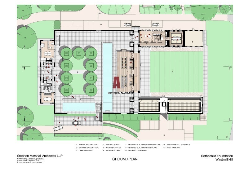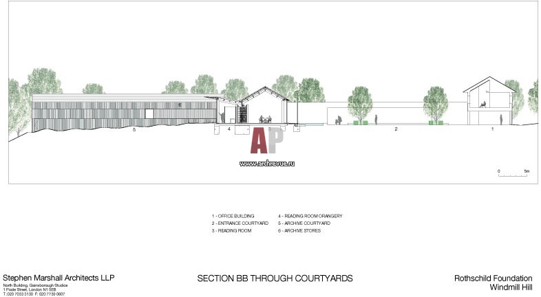 Раньше на этом месте размещалась молочная ферма. Архитекторы решили сохранить расположение зданий без изменений. Здания комплекса повторяют пространственное распределение старых корпусов, некоторые из которых сохранились с прошлого века. Дома сгруппированы вокруг внутреннего прямоугольного двора. Туда выходят окна читального зала архива и магазины. Также имеется зеленая открытая площадка, ориентированная к дороге.