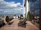 Панорамные окна – неизменные элементы таких интерьеров. Однако не все пентхаусы предусматривают выходы на крышу. Поговорим о тех, в которых эти выходы есть. Итак, пентхаус с выходом… Терраса, о достоинствах самого наличия которой говорить даже не стоит, может иметь несколько вариантов оформления. Во-первых, просто конструкция, открытая всем ветрам. Чаще всего на открытых террасах такого типа полы выстилают палубной доской и в качестве ограждений применяют стеклянные (чтобы не перекрывали пейзаж!) конструкции. Такие террасы могут использоваться как места проведения вечеринок, веселых встреч в теплой дружеской компании.