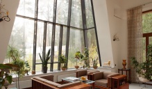 Другой тип террас на крыше представляет собой крытую остекленную конструкцию, интерьер которой является гармоничным продолжением общей идеи.